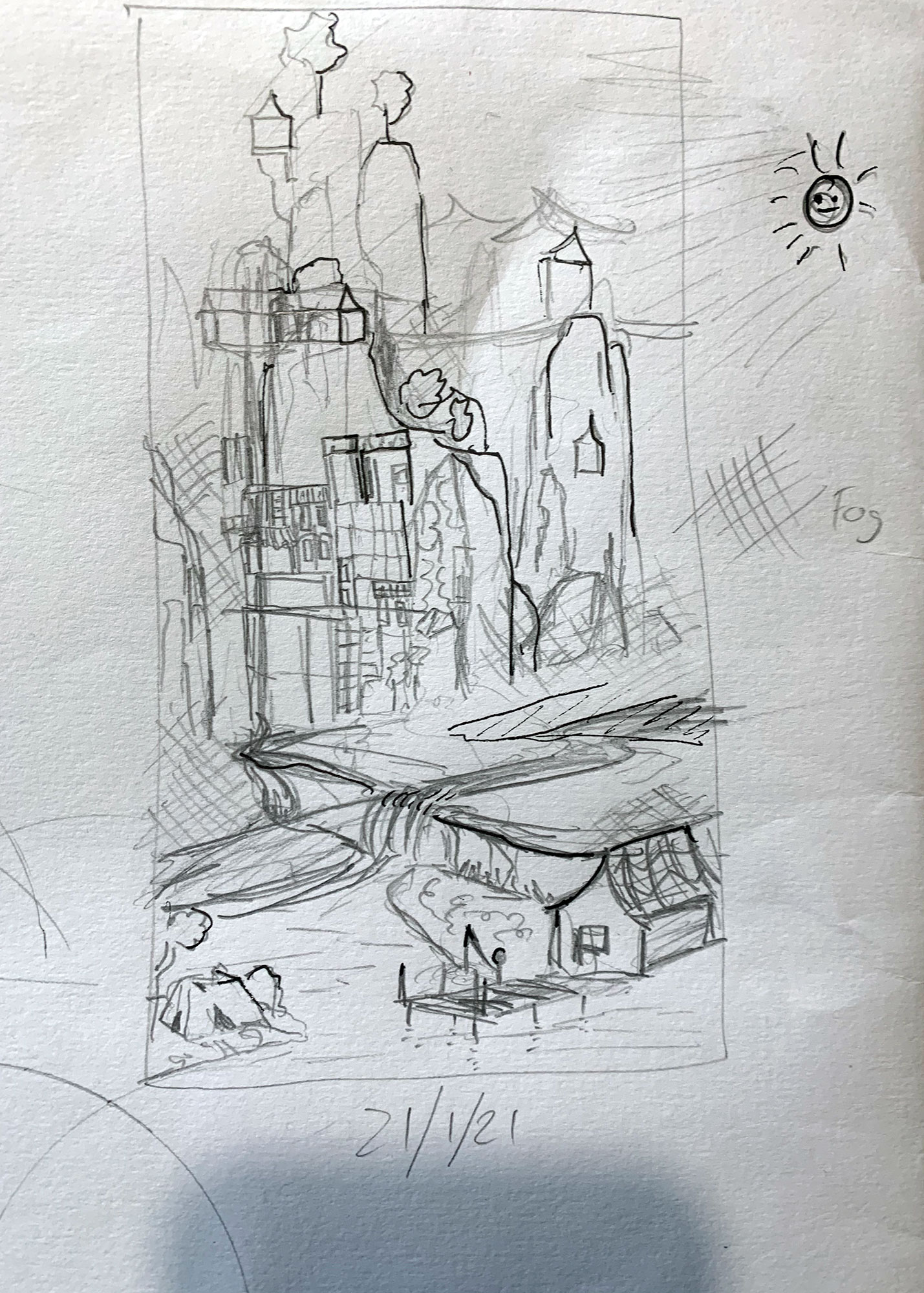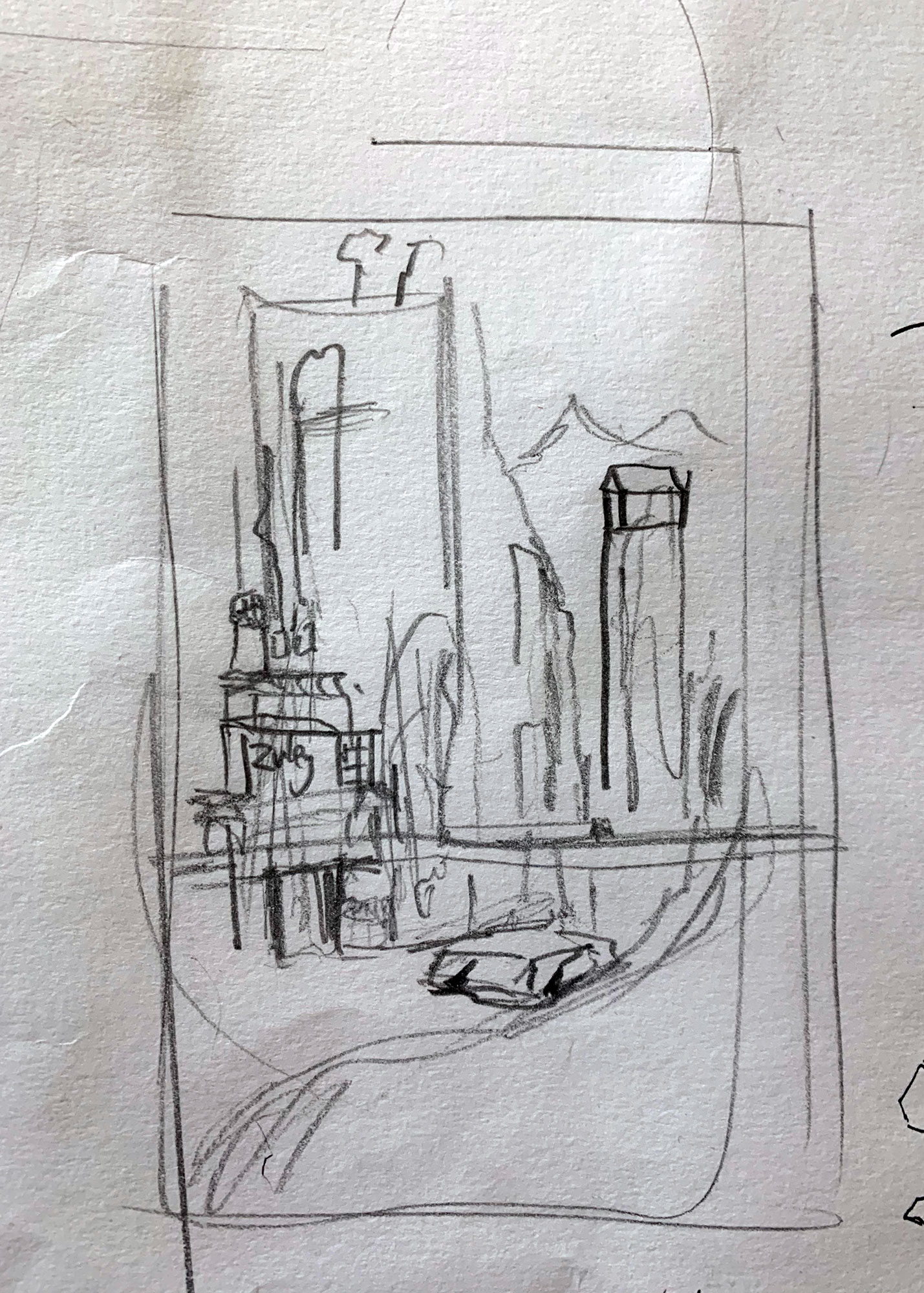 Sketches experimenting with how best to integrate my work with traditional Chinese methods, looking at both hanging scrolls and hand scrolls.