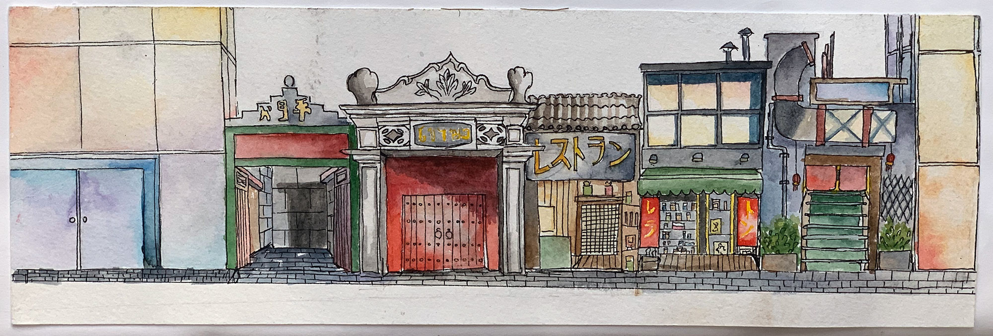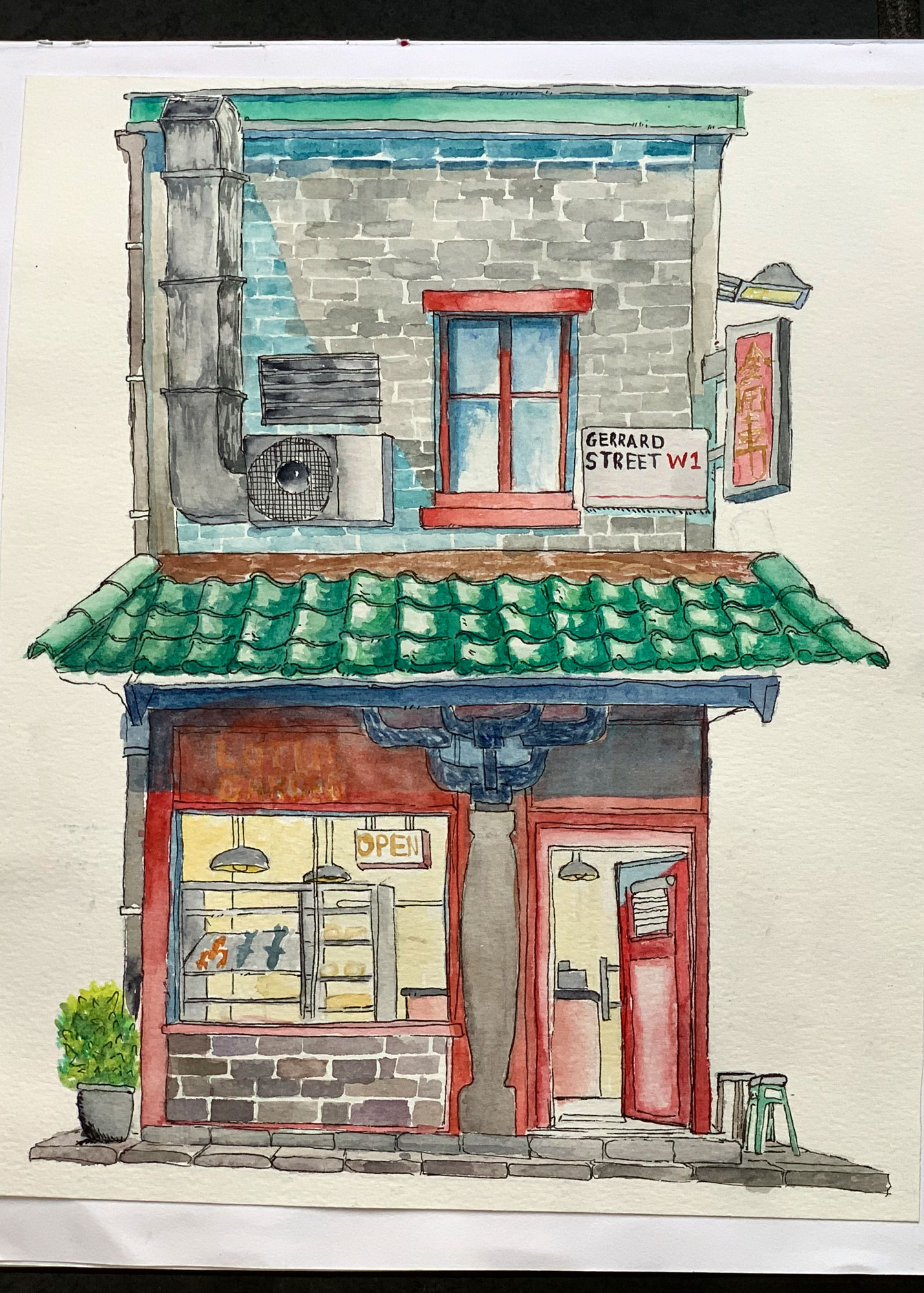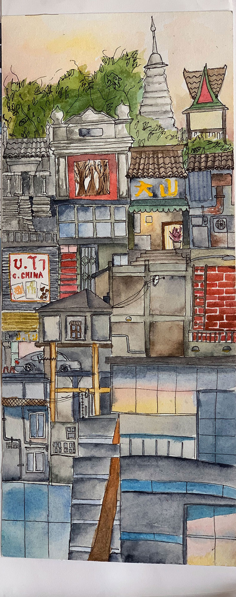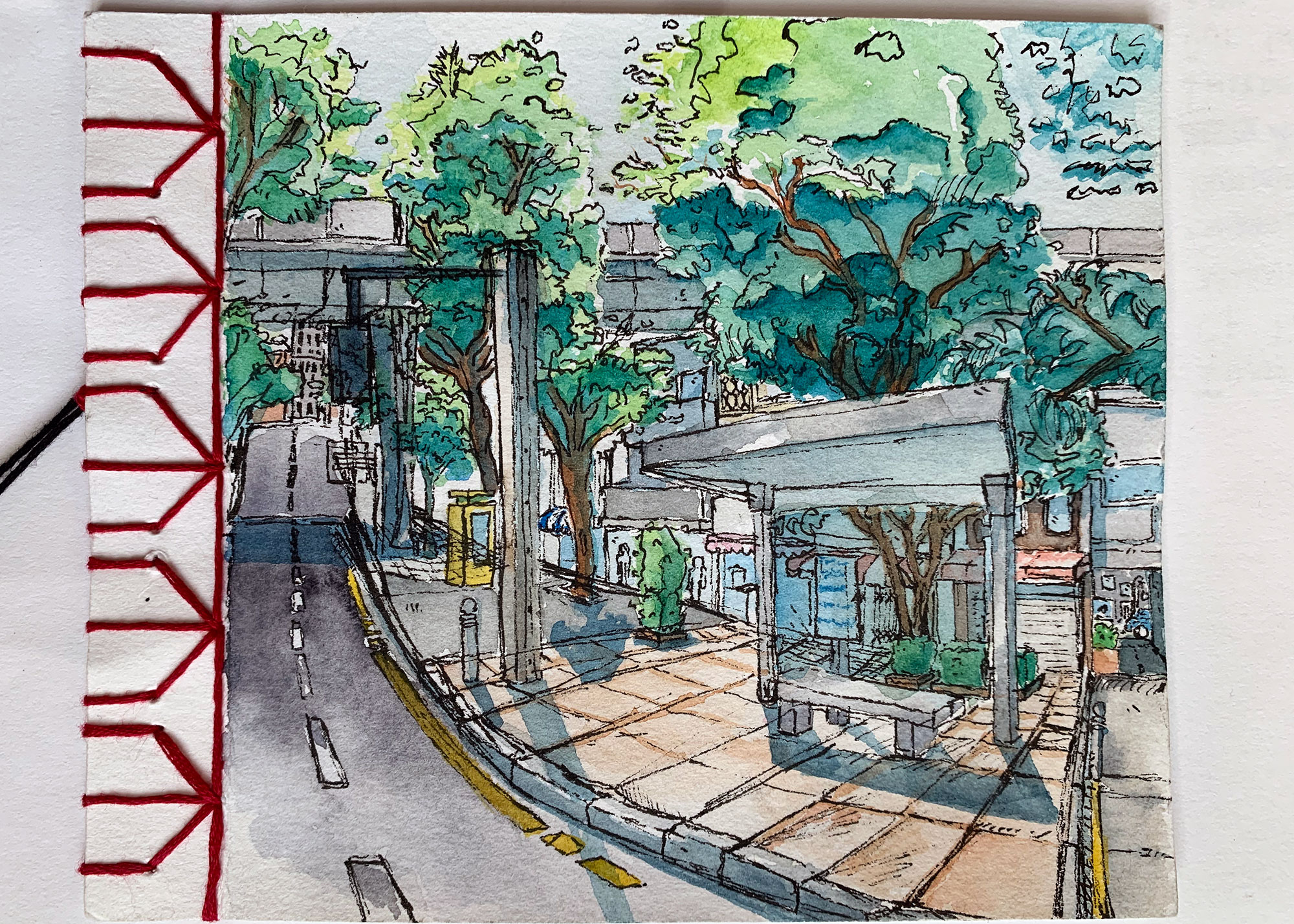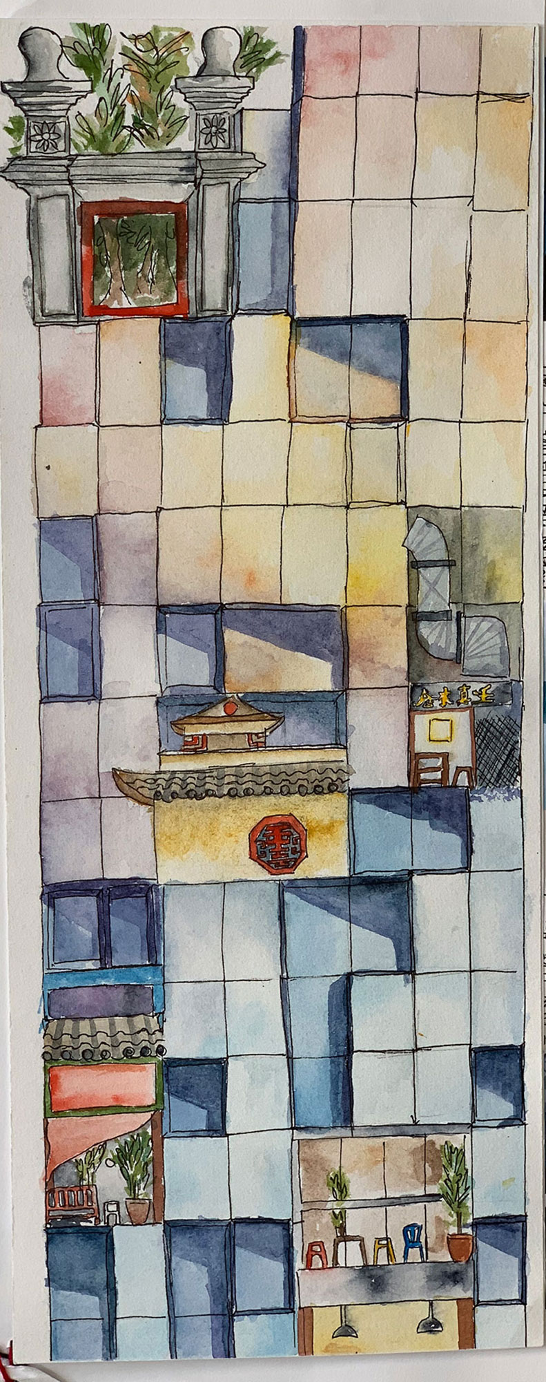 Work looking at creating books using Chinese book binding and experimenting with different perspectives to sketch and paint from.